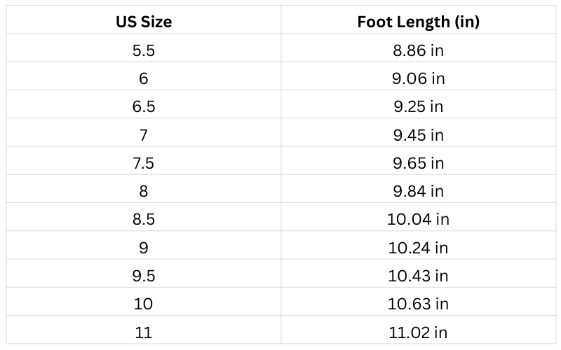 Size Chart (Inches):