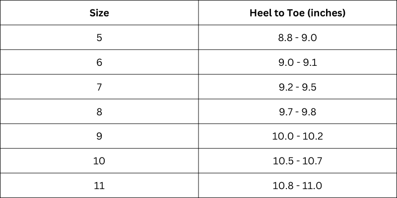 Size Chart(inches):
